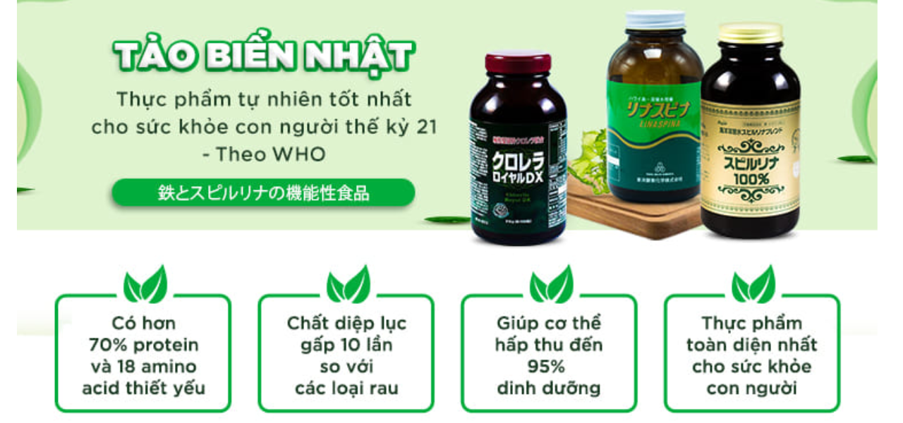 Tảo Spirulina 100% Japan Algae, tăng sức khỏe, cải thiện tiêu hóa Nhật Bản 2200 vi...